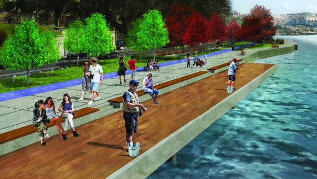 Проект обновления прогулочных зон предусматривает обновление пешеходного покрытия, создания велосипедных дорожек и строительства специальных пирсов для рыбаков, которых нередко можно встретить на набережных в любой день и погоду.
