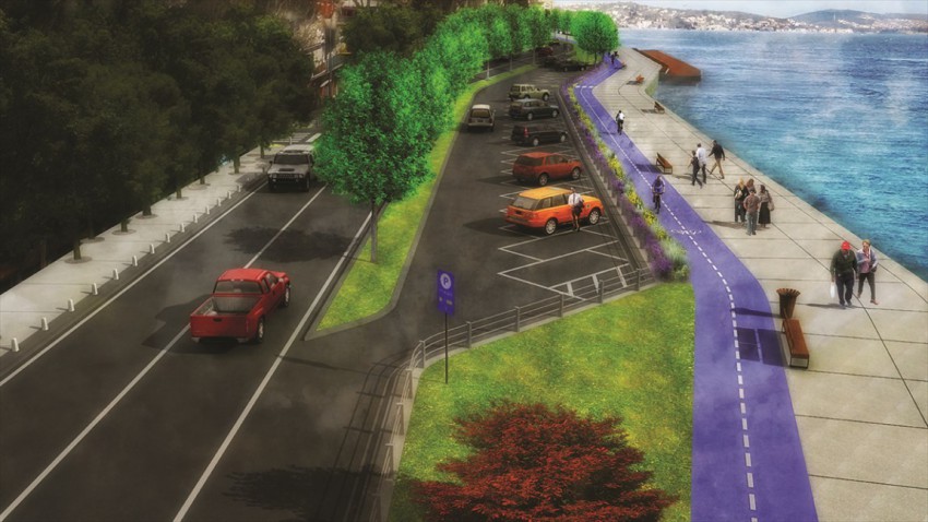 В проекте также заложено строительство автопарковок, которые дадут возможность оставить свой автомобиль и прогуляться пешком, тем более, что парковка на обочинах данных участков набережной будет запрещена.
