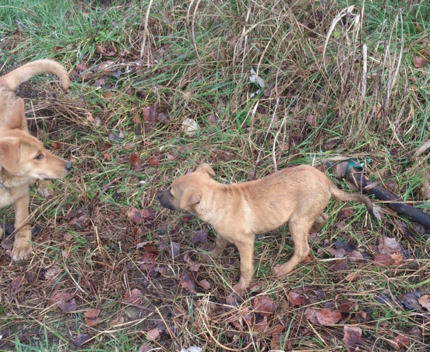 Пристраиваются подброшенные под забор щенки