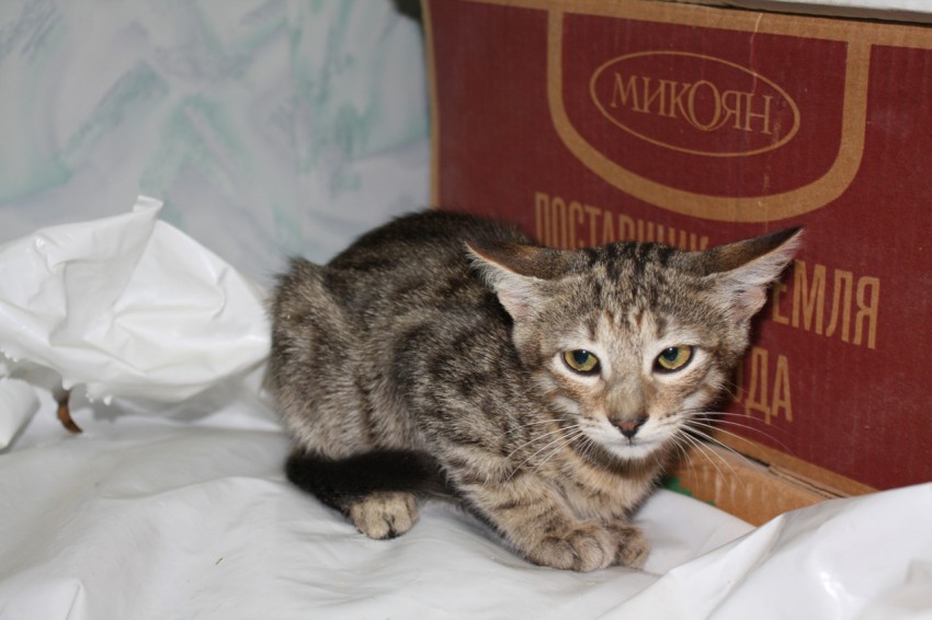 Черный все время мурчит на руках, а полосатый забавно разводит уши в стороны (похож на рысь). Малыши очень хотят найти себе любящих хозяев.