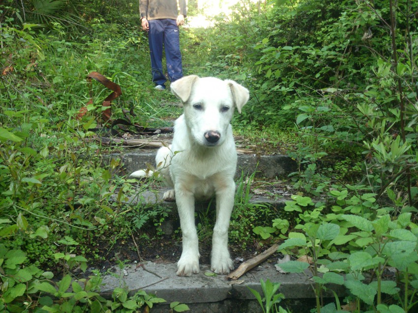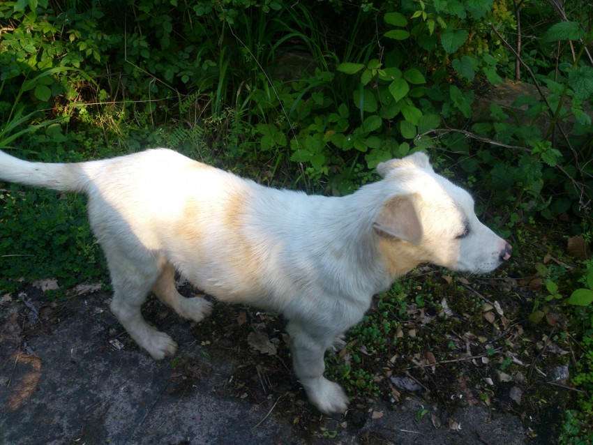 Щенок в добрые руки. Мальчик, возраст 4-5 мес. Красивый белый окрас с несколькими желтыми пятнами на спине. Вырастет чуть больше среднего размера, отличный вариант в частный двор. Уже хорошо проявляет охранные качества, так что берите и не пожалеете. Здоровый и веселый парень, в еде неприхотлив. Очень хочет обрести дом и заботливого хозяина.