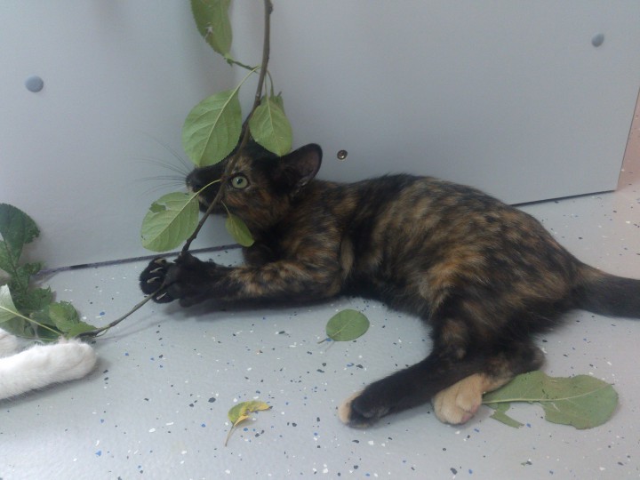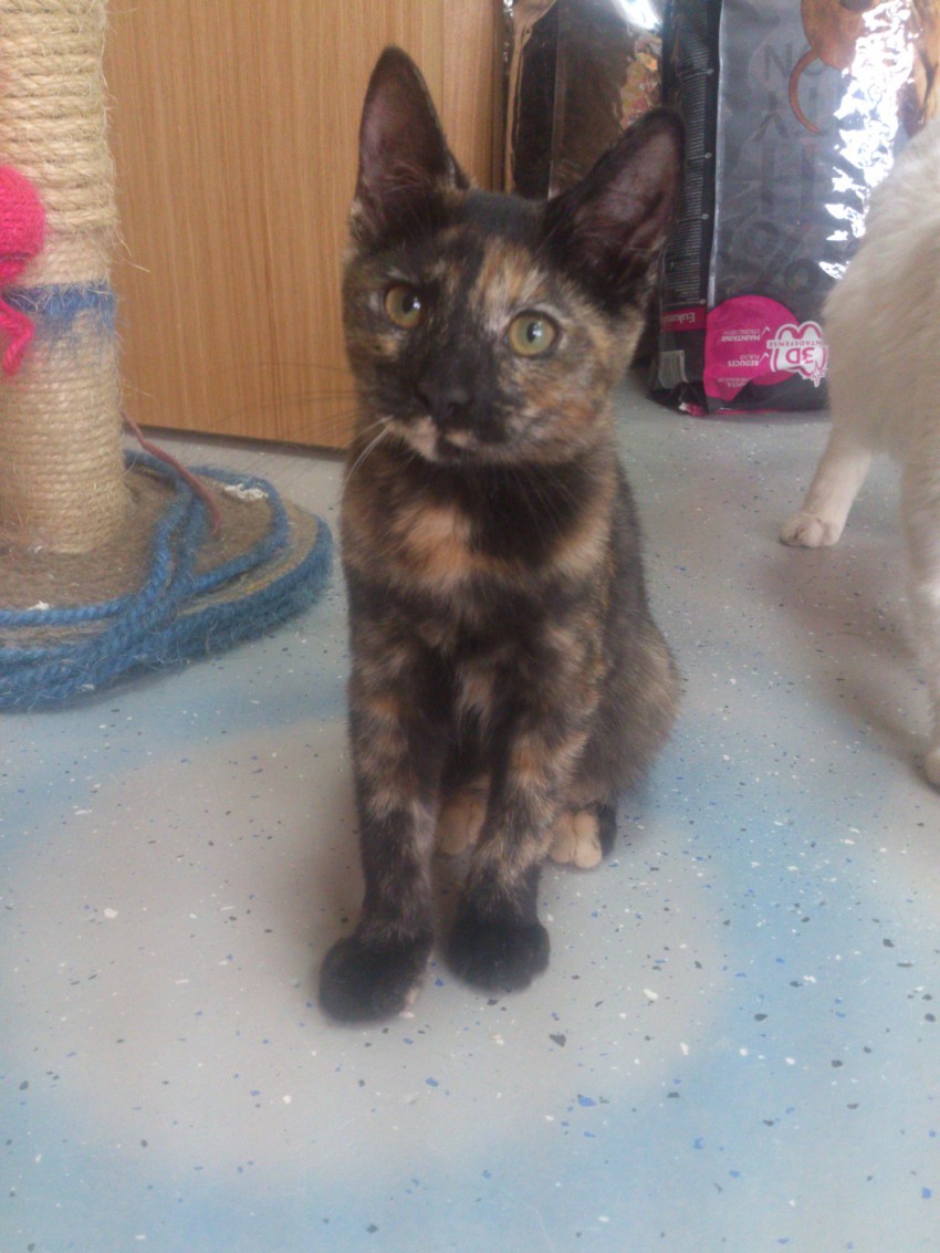 Котенок с изумительной маскировкой, необычайной красоты. Кошечке 4 мес. Уже стерилизована, котят не будет. Она очень ловкая и подвижная, будет хорошей крысоловкой в частном доме. Замечательная кошечка неповторимого полного яркого черепахового окраса с двухцветными желто-зелеными глазами ждет своих хозяев. Приучена к лотку, очень чистоплотная, без паразитов. На руках ласковая, не выпускает коготки. Не требует постоянного внимания и присутствия, довольно самостоятельная. В ней чувствуется интеллект, понятливая и сообразительная девочка. Абсолютно не крикливая. Взяв себе эту красавицу, вы получите бесконечный и НЕнадоедливый источник энергии. С ней будет очень интересно и весело детям. В еде не привередлива. Чудо а не кошка! К другим кошкам быстро привыкает. Помогу с доставкой к вам домой. 8-988-506-15-48