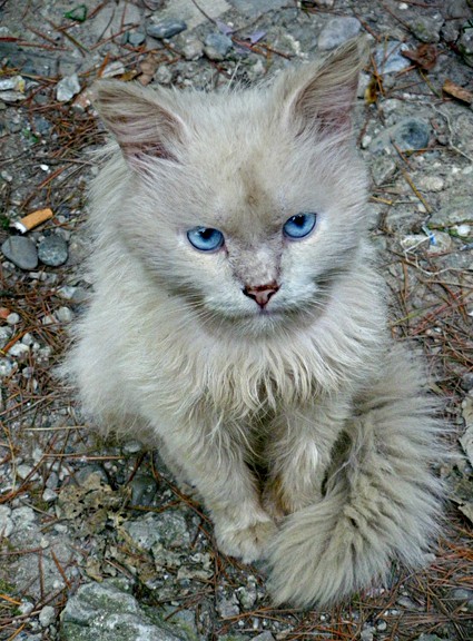 На Западе пока еще не прошла мода на спасенных бездомных животных. Сколько там фотосессий про них: «До» и «После» помещения животинки в добрый, понимающий дом. Я каждый день прохожу мимо этого несчастного. Он явно не уличного происхождения. Может сбежал и потерялся, может выгнали… Сидит он у магазинчика на перевале с Красноармейской в сторону Виноградной. Возьмите!!! Если его отмыть (мы два дня назад пролечили его «stronghold», на месяц он спасен от блох, клещей и подкожных глистов), он превратится в пушистое чудо с небесно голубыми глазами и роскошным хвостом. Шерсть исправить не трудно — хорошим кормом покормить месяц-другой и она заблестит. На первых порах готова помочь с ветеринаркой, так как знаю про котов почти все. У нас дома два(!) пожилых, не совсем здоровых котика. Люди добрые, давайте поможем этому коту стать домашним любимцем!!!