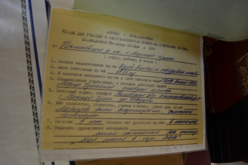 А после торжественных мероприятий мы пошли в школьный музей боевой славы. Хочется особо это отметить. Школьный музей в единственной сельской школе является одним из лучших в районе и имеет свой паспорт: