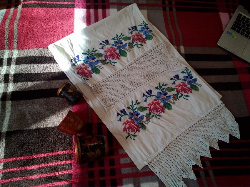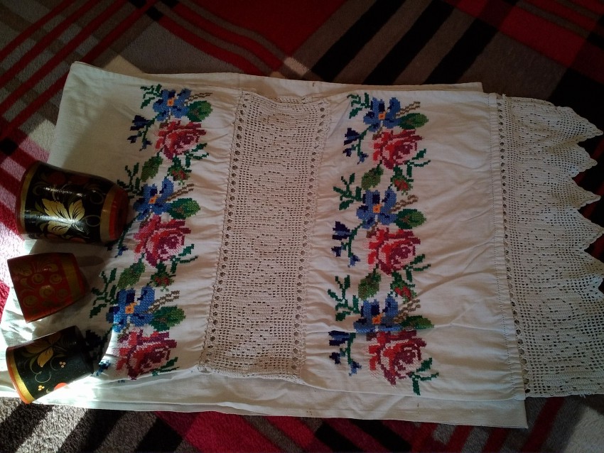 У моей бабушки в этой хате тоже и занавески на веранде были с вышивкой ришелье и салфетки всякие, ина спинках железных кроватей, а потом Отец тоже на современный лад переделал кровати с лаковыми спинками и ортопедическими матрасами и т д, для меня та хватка теплей ( роднее ) была.