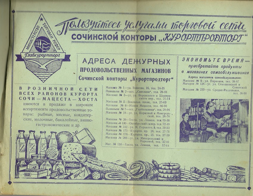 Сам Сочи представлен Дендрарием, ванным зданием Мацесты, обобщенным понятием «пляж в Сочи», башней на Ахуне, Агурскими водопадами, Тисо-самшитовой рощей, дорогой на Красную Поляну и совхозом Южные Культуры.