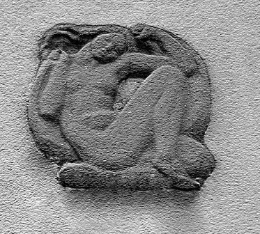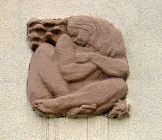 И вот, наконец, решение было принято, и мы остановились. Чтобы разглядеть и разобраться: в чем же загадка этих квадратов.Квадрат – символ Земли и материального мира вообще, «мужской» символ; фигуры на рельефах — как в утробе, их энергия сконцентрированная, сжатая, титаническая. Задрав головы кверху, наталкиваясь на недоумевающих прохожих, мы рассматриваем пристально и со вниманием к деталям. Чем больше смотришь, тем больше зрелище завораживает и озадачивает. Кого тут только нет: и соблазнительно извернувшаяся танцовщица с бубном, и джигит, и читающий атлет (бывает же такое!), и девушка с белкой и зайчатами! Лабиринт пластических форм вовлекает в длительное путешествие, начинаешь кружить взглядом и не можешь остановиться — как наваждение!