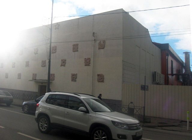 Удачный момент: этой своей частью, здание никому не помешало строить новый облик города. И сохранился чудесный и удивительно богатый во всех отношениях цикл картинок — рельефов. Хотя и изменился их первоначальный цвет, серого цемента и ушла зернистая фактура. Когда то жемчужно-серые, сейчас рельефы выглядят, словно облитые, хм, кофием. Да что уж тут придираться, главное, что они есть, и продолжают нас удивлять. Обычно мы видим их из окон автобуса. И не успел ты разглядеть, ни кто эти странные личности с распластанными широкими неулыбчивыми губастыми лицами, ни что они делают там, каждый в своей «клетке» (и как они там помещаются – тоже вопрос). Впрочем, иногда в неторопливом движении взгляда, успеваешь понять, что «клетка» не всегда на одного, иногда успеваешь ухватить и один квадрат целиком, чаще всего последний внизу, в котором «живет» девушка с длинными распущенными волосами. И всё. Больше ничего не успеваешь, думаешь: в следующий раз обязательно рассмотрю! Но, увы, история повторяется снова и снова. Рельефы так и остаются неразгаданными иероглифами майя.