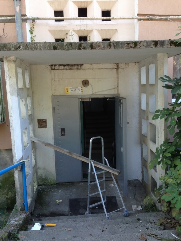 Не дожидаясь от РЭО-7 ремонта на выходных решили сами покрасить фасад подъезда. Довольно не плохо получилось.