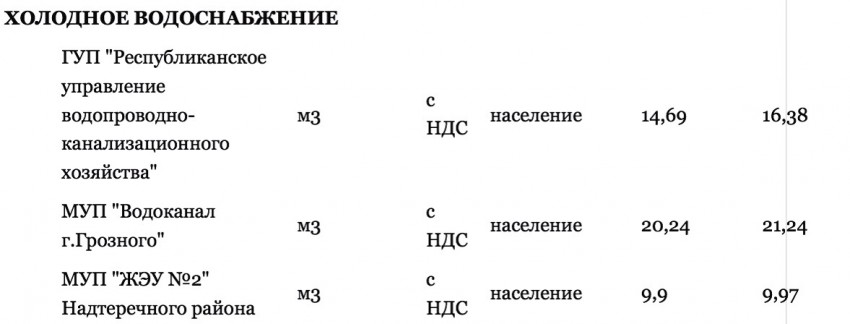 Вот тарифы из Чечни, левая колонка нынешние цены с 01.01.2015, правая колонка новые тарифы с 01.07.2015