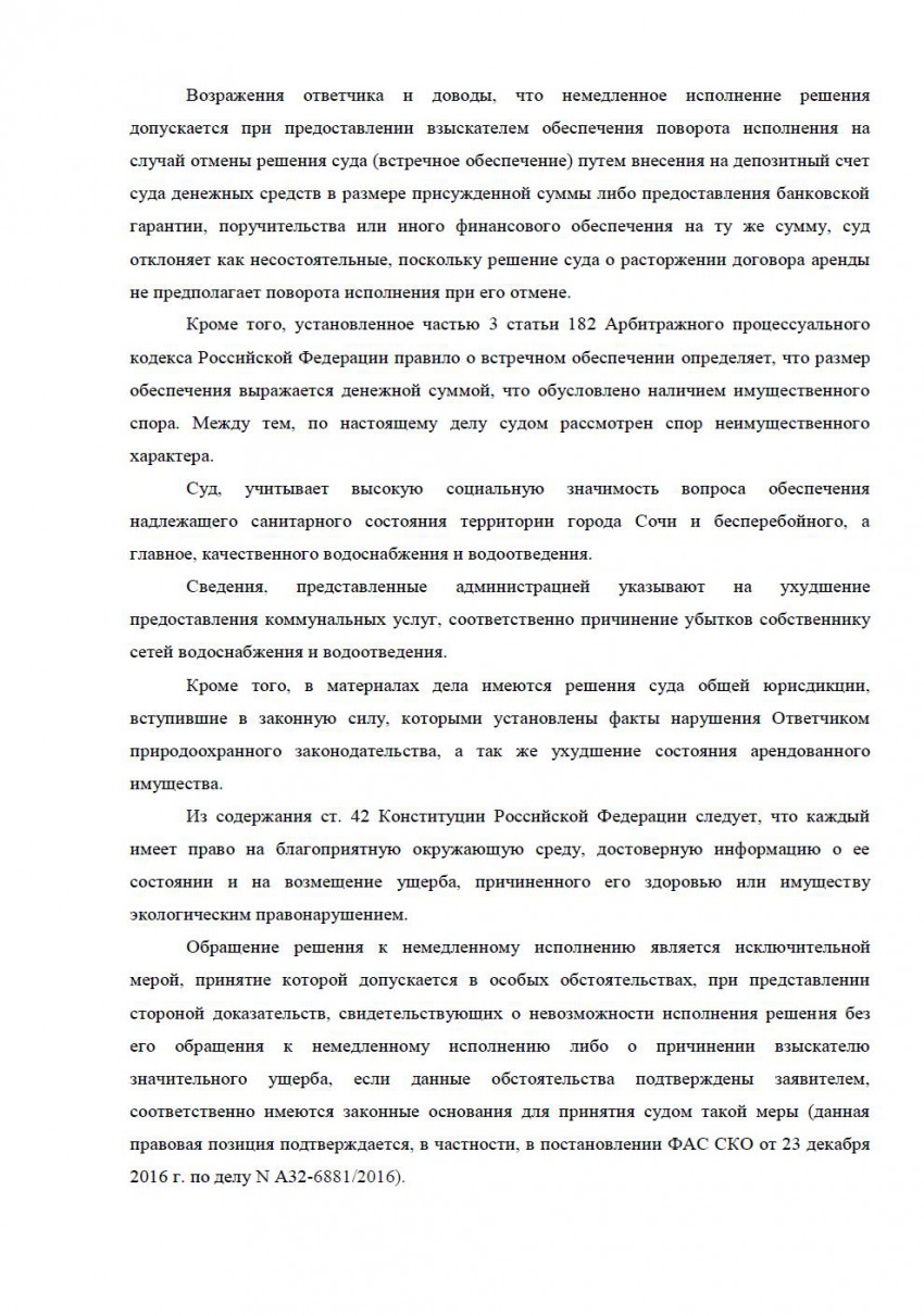 Тяжбы по делу шли с 2015 года. Сегодня в Краснодаре арбитражным краевым судом принято окончательное решение о расторжении договора аренды на имущество с ООО «Сочиводоканал». Все имущество должно быть безотлагательно возвращено муниципалитету.