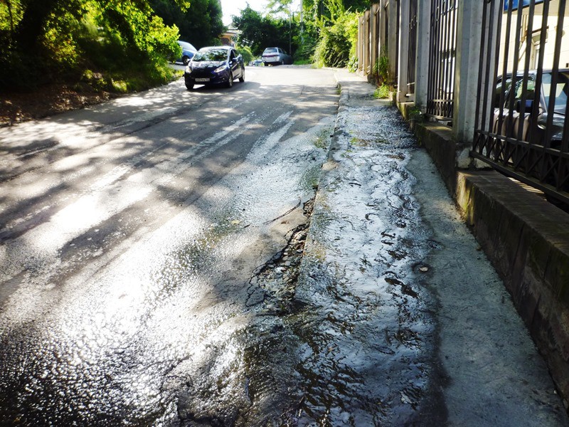 Вот этот источник чистой воды уже более месяца бьет на пересечении улицы Пластунская и поворота на Верхний Юрт. Ни дорожные службы, ни МУП «СочиВодоканал» не видят и не устраняют (ул.Пластунская, 198 А). В январе 2018 г. МУП «СочиВодоканал» там уже ковырялся, ремонтировал. Ждали ремонта тогда тоже около месяца. Хватило на полгода. Снова водоканальский родник размывает убитую дорогу.