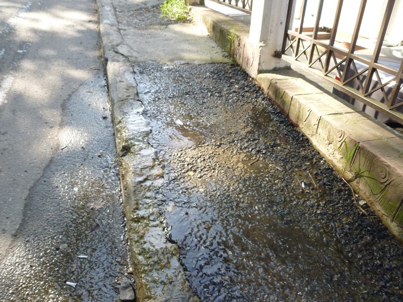На улице Санаторная течет из под земли какашки фекальные воды. Речушка с запашком пробила себе дорогу из под земли и стекает по проезжему дорожному полотну.