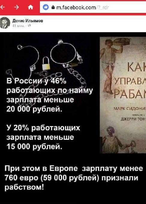 А что при этом из страны вывозят деньги и ценности на триллионы долларов, грабят её ресурсы по черному, распродают стратегические производства иностранцам — уже где-то до 90 процентов (!!!), что за электричество мы платим на кипр, а за воду чуть ли не в лихтенштейн (!), при этом бОльшая часть населения живет в бедности а под 20 миллионов в кромешной нищете, тысячами тонн скармливают людям пальмовое масло, от которого в иных странах категорически отказались как от канцерогенной отравы, и медицина с образованием деградируют почти что в сторону позапрошлого века, и пенсии у пожилых отняли, ограбив их в надежде на их скорое вымирание — при наличии в бюджете 14 триллионов в загашнике, возможно, на новый майдан и госпереворот — так зоммбероподобных это не волнует: главное — шмотьё, бытовая техника, машины и развлечения — а также джинсы, кола и жвачка неограниченно. И такие зоммероподобные из недопроизошедших рептилий считают себя «очень круглыми умниками» — похоже у таких IQ вообще ниже точки замерзания по Цельсию и по Фаренгейту!