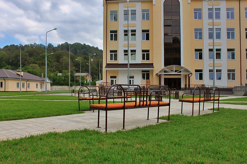 Теперь минусы: Как уже писали, хоть территория и большая, но нет ни одного дерева. Понятно, что больницу только построили, но хоть посадить то, на перспективу можно было бы. Рулонная трава вся высохла и пожухла, никто ее конечно не поливал. В нашу жару выходить днем на улицу — чревато солнечным ударом, так что днем все сидят в палатах и нос не высовывают.