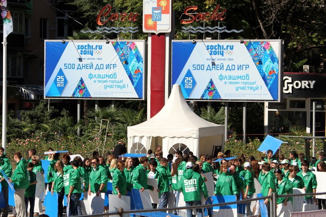 25 сентября Россия перешагнула очередной Олимпийский рубеж – до первых в истории России XXII зимних Олимпийских игр в Сочи остается ровно 500 дней. Различные спортивные и музыкальные мероприятия прошли в 17 российских городах. Кульминацией праздника стал всероссийский флэшмоб, главными действующими лицами которого были волонтеры «Сочи 2014» из 26 волонтерских центров, представляющих 14 регионов страны. На площадях, стадионах и в спорткомплексах своих городов более 12 тысяч волонтеров приняли участие в построении гигантских олимпийских пиктограмм, собрав в общей сложности все 22 изображения зимних видов спорта.