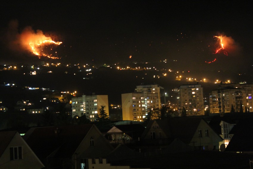 Пожар на горЕ наблюдаю уже около 3-х часов. и по всему видно, что его никто не тушит и момент тушения по всей видимости давно профукан. Ручеек огня уже опоясал гору в виде подковы. По обоим краям спустился к жилым домам. Там по-ходу какой-то ужас творится. Очевидно, что тушить надо только с вертолета, но поднялся ветер.