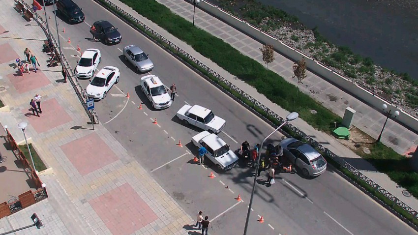 Горит кафе «Восток» или офисное здание рядом. Пожар достаточно серьезный — много пожарных расчетов и скорых.