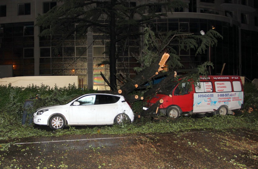 Шквалистым ветром в центре Сочи и Дагомысе повалило десятки деревьев. Этим же вечером ремонтные бригады приступили к устранению последствий урагана, и надо отдать им должное, почти полностью справились со своей задачей уже к утру следующего дня.