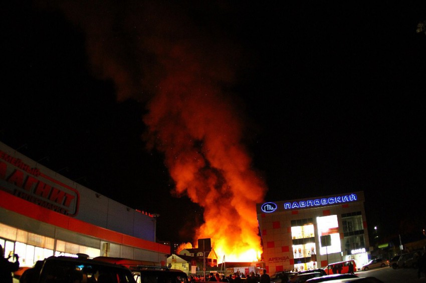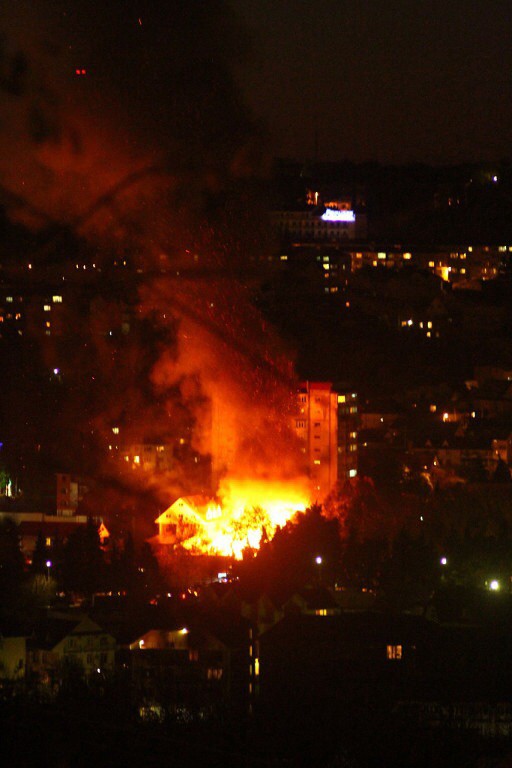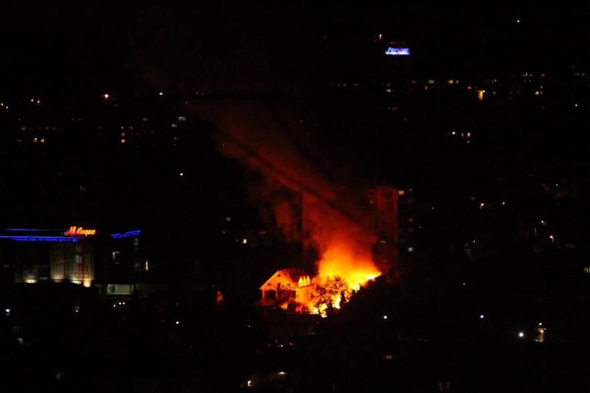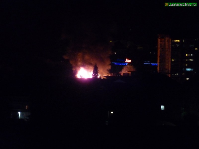 В районе 18-30 произошло возгорание гостиницы в Лазаревском по улице Калараш. Снимали из машины, поэтому полного масштаба пожара к сожалению не передать.