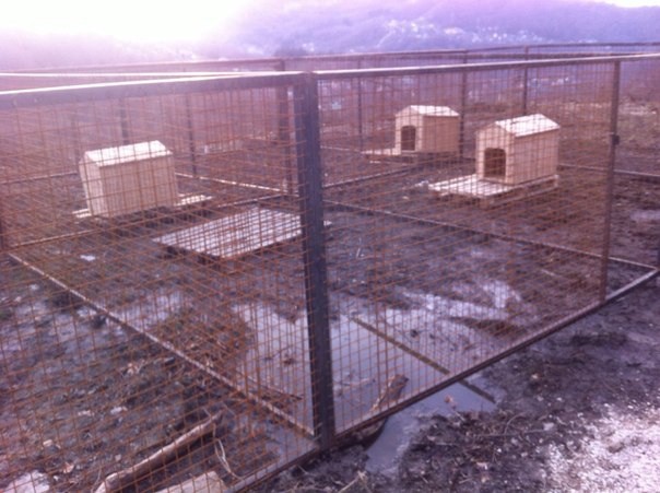 Позавчера на моих глазах в новый приют завезли первых 15 собак. Привезла их всем нам печально известная организация по отлову/отстрелу собак «Бася» по заказу лично администрации города Сочи. Так вот, в официально открытом приюте не было НИ ОДНОГО сотрудника! Собак и щенков оставили в вольерах без еды и воды в ужасных условиях: маленькие дешевенькие будки посреди грязи и луж, на холоде, ни мисок для еды, ни для воды не поставили, обтянули все это ржавой сеткой и дело готово.