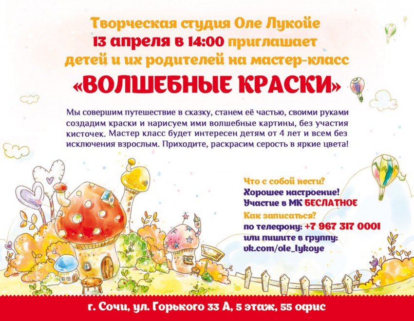 В центре Сочи в середине апреля отрывается творческая студия для взрослых и детей «Оле Лукойе».