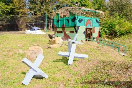 Подбитый самолет, танки и пушки, окопы и дзоты выполненные по образцам времен Великой Отечественной Войны стали основой новой пейнтбольной площадки, начинающей работу в Пейнтбольном парке «Дагомыс».