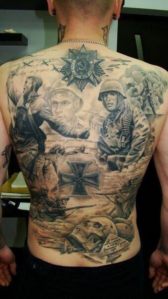 уважение к своим павшим дедам защищавшим нашу страну от фашистов, к родителям вложившим любовь и силы в этого «товарища»? — далеко не ахинея, это к теме тату с 2-рас и в целом копирование у себя на теле всей западной культуры чуждой нашему народу только потому что модно, можно и патриотизм назвать ахинеей, но в таком случае последствия для общества будут более плачевными, чем просто безобидное самовыражение себя любимого. Что мы можем наблюдать на украине, оно ведь не неоткуда взялось, определенные манипуляции с обществом дают свои плоды — журналы, кино, тату… и т.д. культура в целом. Думаете сам пошёл по своей воле взял и сделал тату? Да как бы не так, это просто ты взял и бездумно скопировал что тебе вложили в коробчку грамотные дяди, хоть ты и думал пару лет над этим, это ни имеет значения