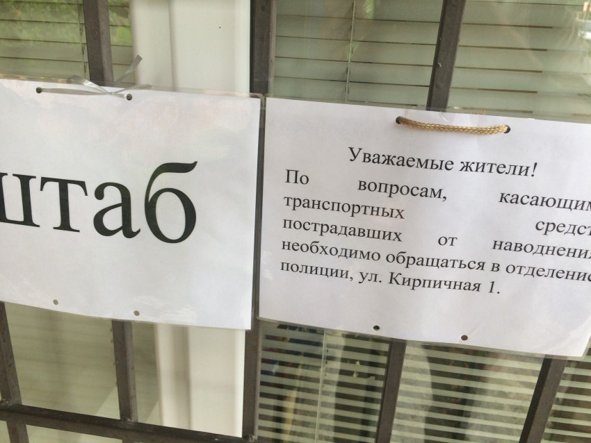 Здесь принимаются заявления от жителей близлежащих подтопленных улиц на оказание разного вида помощи. В том числе оценка нанесенного стихией ущерба, откачка воды из подворий и подвалов, доставка продуктов питания первой необходимости, помощь волонтеров в разборе завалов.