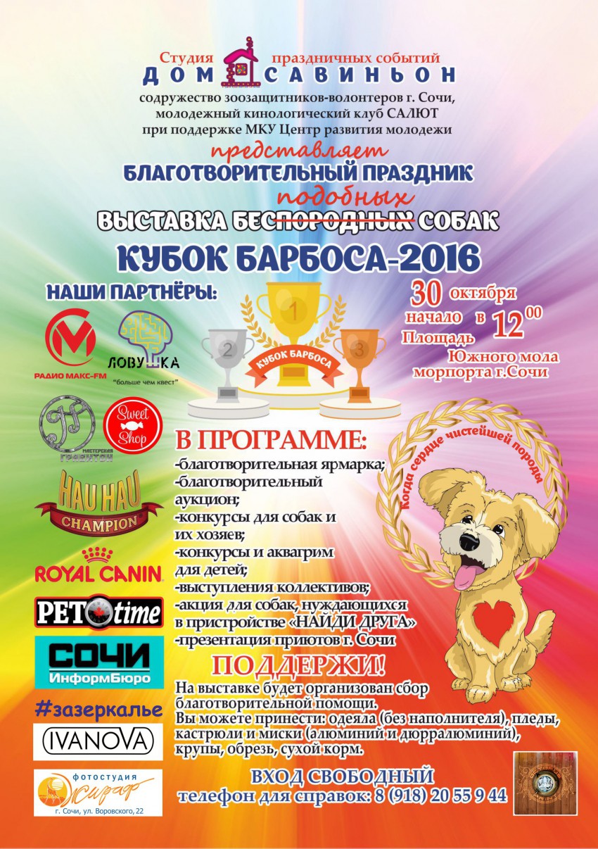 Студия праздничных событий «ДОМ САВИНЬОН», сочинский приют для собак БИМ, молодежный кинологический клуб «САЛЮТ», МКУ «Центр развития молодежи»
