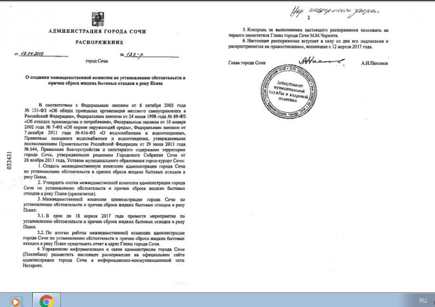 Глава региона дал поручение своему заместителю Андрею Алексеенко полностью сосредоточиться на решении вопросов, связанных с ЖКХ и экологией олимпийской столицы. Уже работает комиссия по расследованию скандала, связанного со сбросом фекалий в реку Псахе. Еще одна комиссия будет разбираться со случаем слива в реку Сочи.
