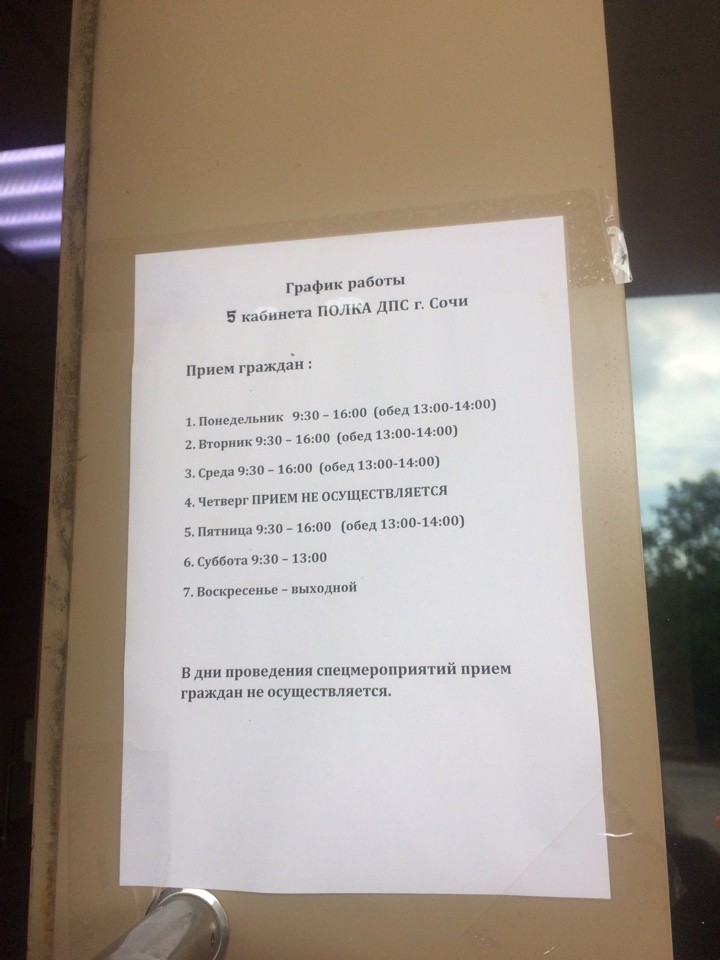 Сегодня отвозила обращение на начальника ОГИБДД УВД по городу Сочи О.В.Федотова, как оказалось, они переехали по адресу: ул. Пластунская 123 (со стороны Конституции)