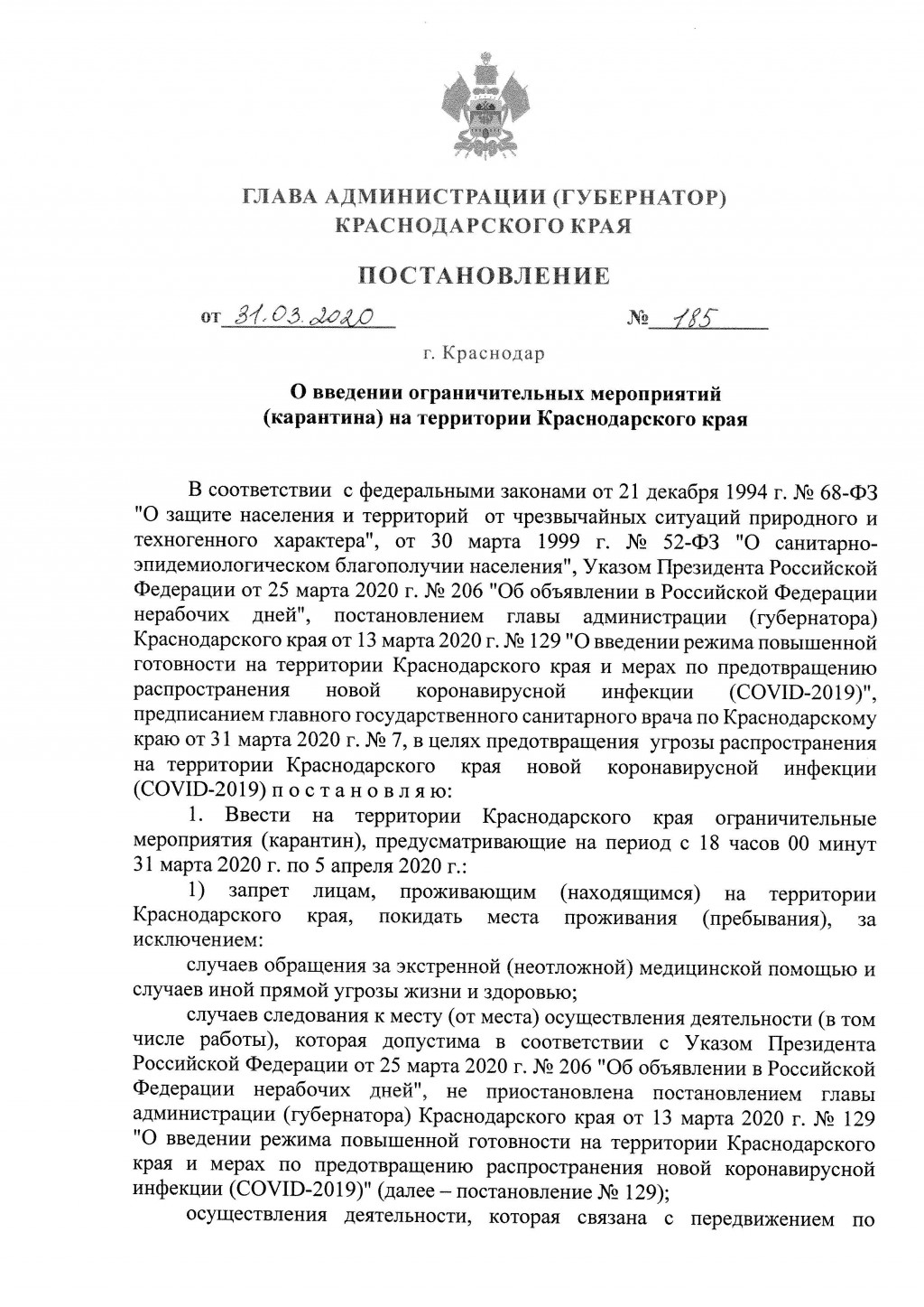 Сегодня с 18 часов в крае объявлен карантин. Он подразумевает под собой полный запрет на передвижение по городу. Исключение — сходить в магазин или аптеку. Мера вынужденная. Запрет также коснется транзитного транспорта. Он не должен заходить в города и станицы.
