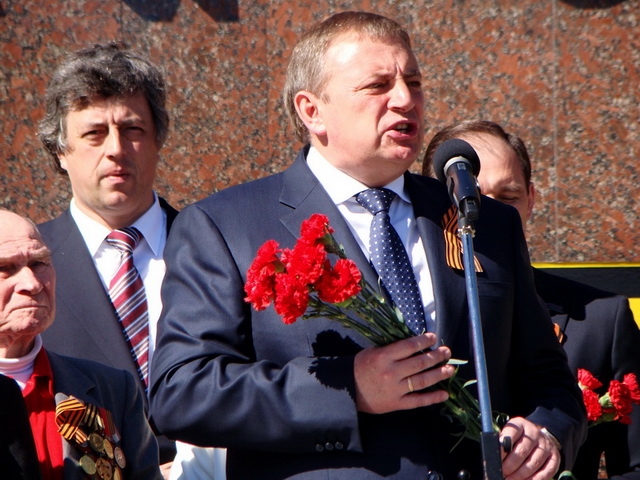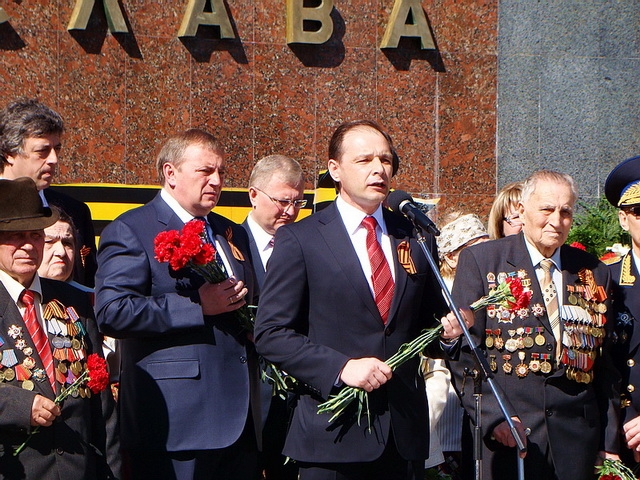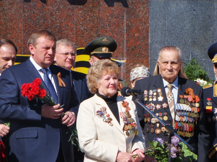 Почетное место у мемориала заняли ветераны. Глава города и председатель городского собрания произнесли поздравительные речи, и поклонились воинам освободителям.