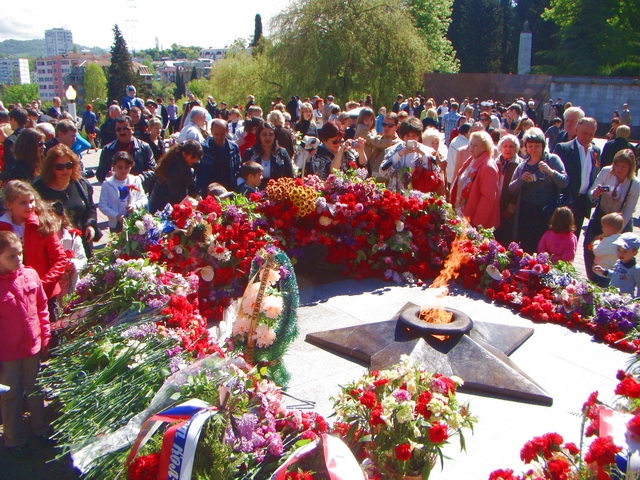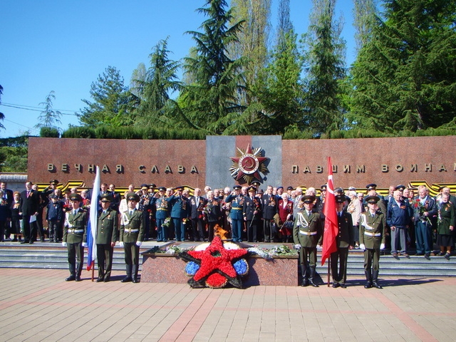 На площади у вечного огня выстроился почетный караул, стройными рядами стояли офицеры и солдаты сочинского гарнизона. Вместе с ними покой охраняли казаки.