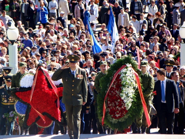 Огромное количество народа потянулось по лестнице к мемориалу воинам освободителям возложить цветы павшим героям!