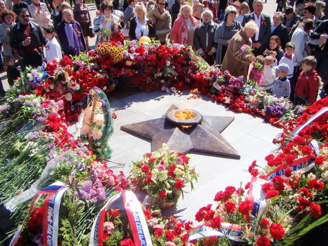 На фотах еще видно высотку (точнее 4-х этажку, до высотки благо не доросла), кот. должны по суду снести, надеюсь к след. Дню Победы уже не будет этого чуда на костях…