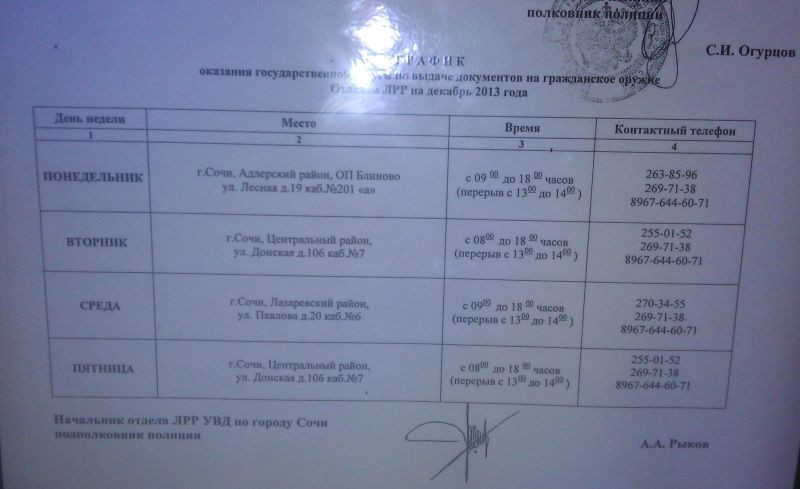 График работы ЛРР УВД по г. Сочи висит на двери кабинета.