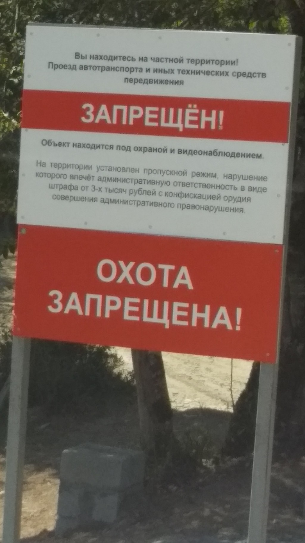На табличке есть слова «На территории установлен пропускной режим, нарушение которого влечет административную ответственность.....».