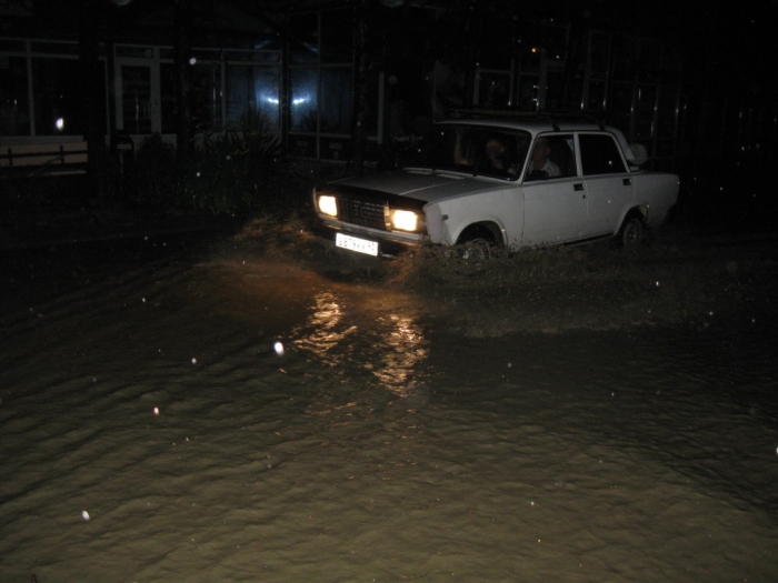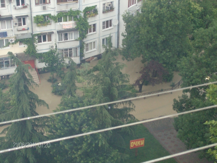 просто вышел из берегов приток реки Дагомыс возле «мир охоты» и прошелся по батумской… мимо 16ти этажек… а некоторые дворы вообще миновало…