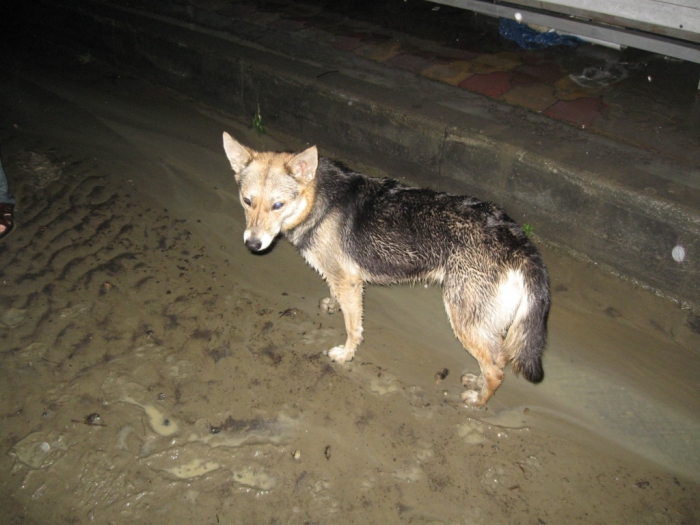 За нами увязалась напуганная псинка. По всей воде с нами ходила, даже плавала периодически.