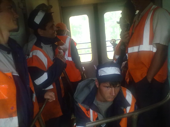 А это бригада рабочих, которая расчищала пути от грязи и камней: