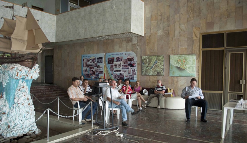 Импровизированный круглый стол, на котором обсуждались перспективы и проблемы развития водного спорта.
