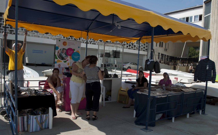 Организаторы наверное не рассчитывали, что днем придут люди и не зделали никакого навеса, а жара была адская.