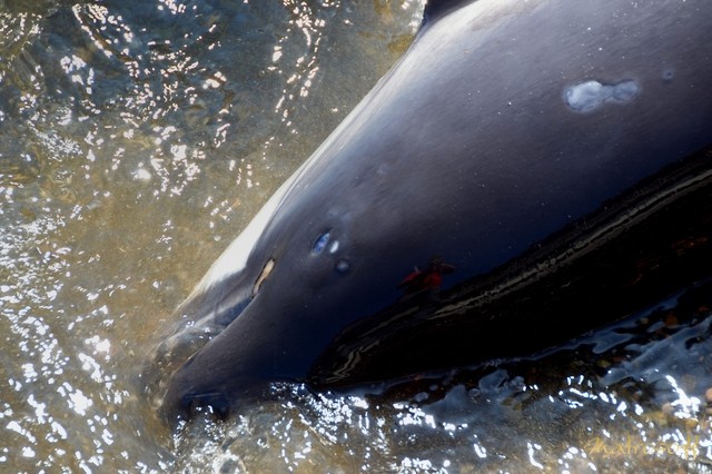 Очередная ужасная находка… Местные завсегдатаи рыбаки рассказали мне, что дельфины гибнут в браконьерских сетях, которые порой по несколько дней подряд не вытаскивают местные браконьеры. И даже знают некоторых из них. Так про одного говорят, что на сто процентов знают, что он в МЧС работает, остальных, по манере борзого поведения, к ментам причисляют. Может это и не так, но на счёт мчсовца они уверены.