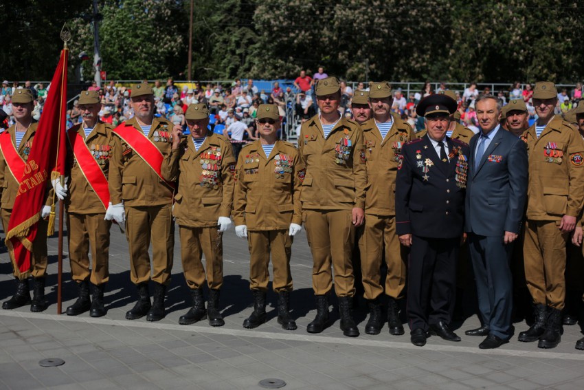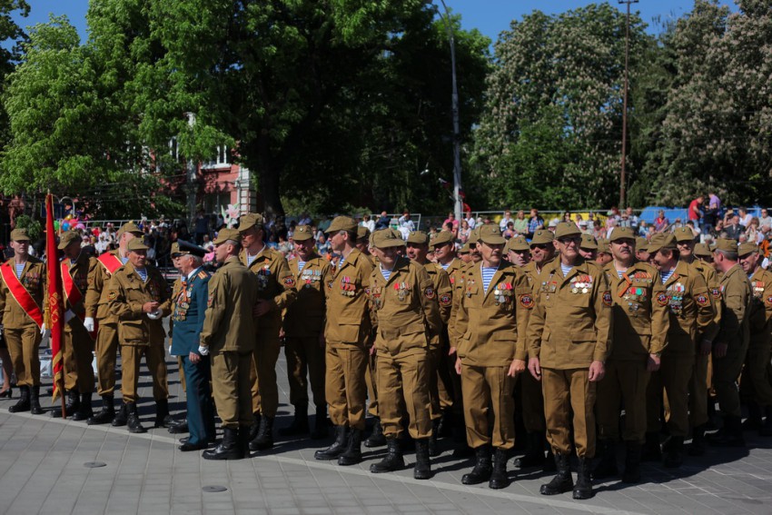 Основу парадной коробки составили члены краевого клуба ветеранов боевых действий “Саланг”, основатели движения ветеранов боевых действий в Краснодарском крае.