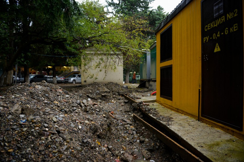 Что убрать? О чем вы? Центр города разрыт, перепрокладывают силовые кабели, тянут теплотрассу к гостинице «олимпийский университет». Эта гостиница в число сносимых новостроев не включена, так что об «уборке» трасс к ней говорить не стоит.