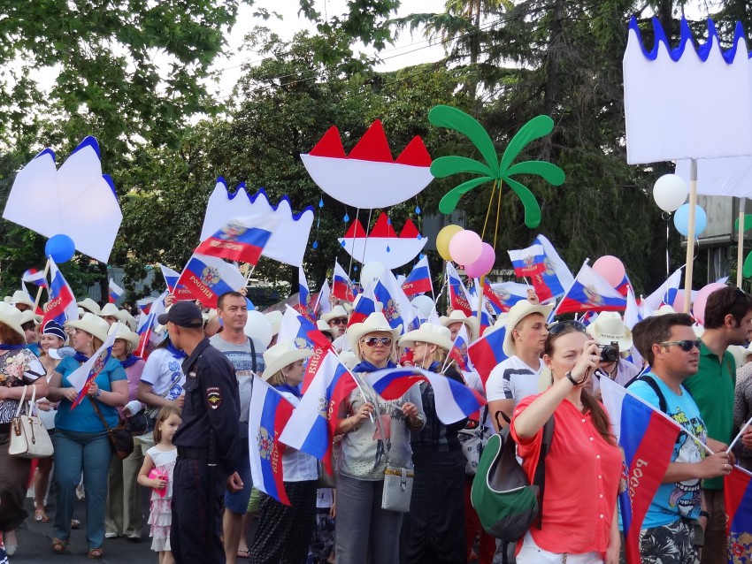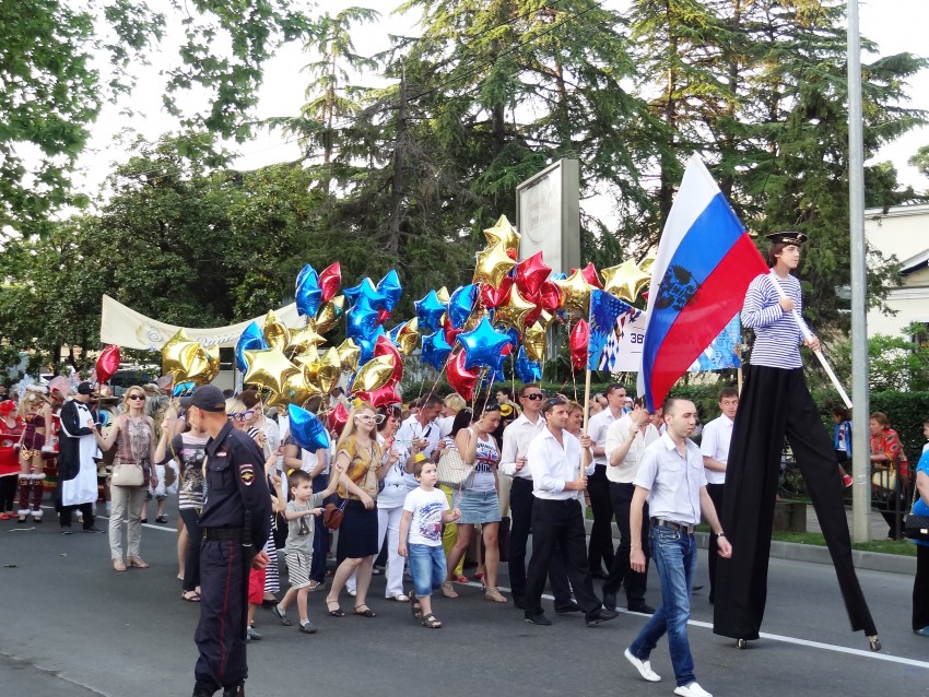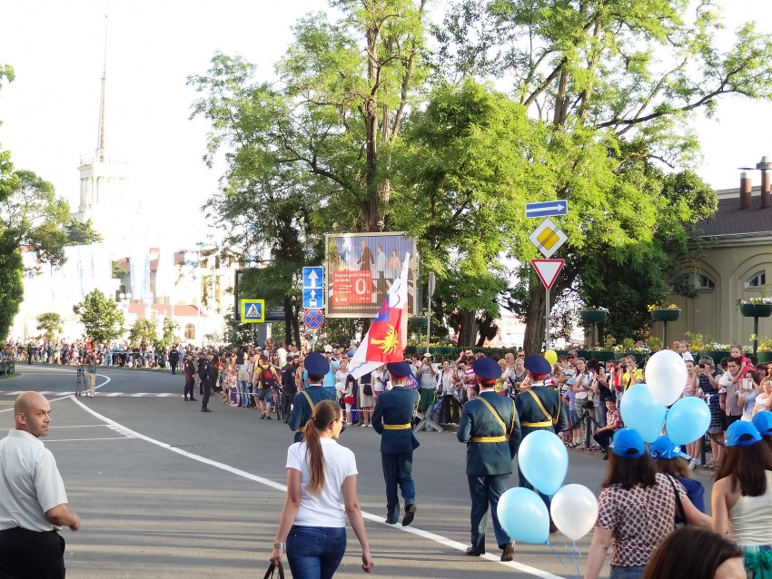 А как должен был выглядеть парад на 9 мая в Сочи? Я не иронизирую. БТРы проехать, ветеранов на машинах провезти? Тут вроде как понятно — трудовые коллективы курортной сферы, 1 мая — вообще трудовые коллективы, так как день Труда. А 9 мая? Вообще, спасибо хать салют был, а то в прошлые года и того не было…