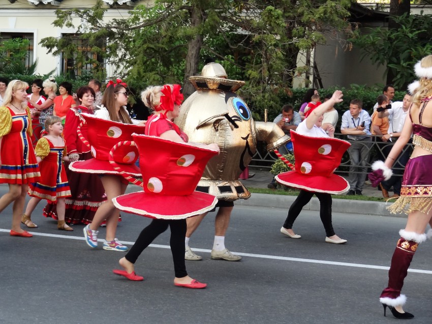 Все конечно очень понравилось… Но есть большое НО!!! И это люди. У меня сложилось впечатление, что многие вообще не были ни на каких мероприятиях и не умеют себя вести в обществе. Толкаются, ругаются-как дикари, ей Богу. Сказали, что идет карнавал и переходить дорогу нельзя, но кто бы слушал! Прутся прямо под ноги участникам шествия. Из-за таких баранов впечатление от праздника немного подпорчено.