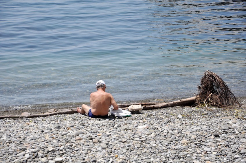 Пляж «Солнечный» встретил нашу компанию грохотом молотков. Очевидно ресторану «Синее море» мало было весны для постройки веранды. Не понимаю, как люди могут загорать, когда рядом жужжат пилы и идет строительство? Удивительно, но могут, на этом грохочущем отрезке пляжа народа было больше всего.